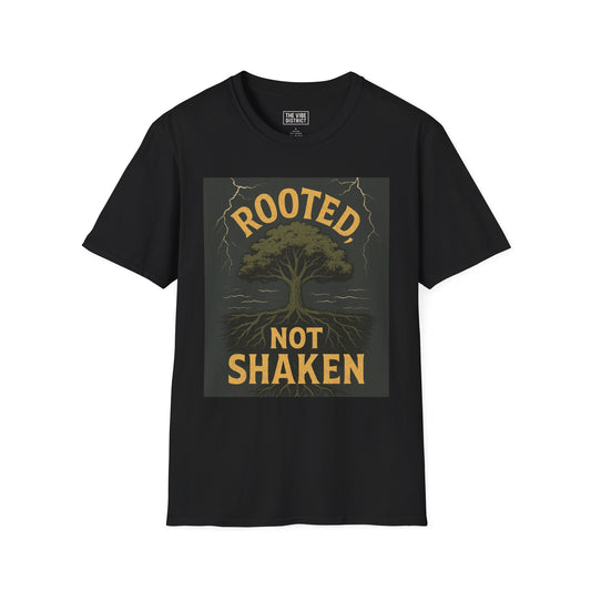 Rooted Not Shaken Unisex Softstyle T-Shirt, Tree Graphic Tee, Nature Lover Gift, Motivational Shirt, Eco-Friendly Apparel
