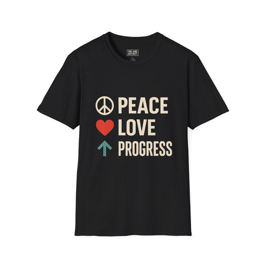 Peace Love Progress Unisex Softstyle T-Shirt, Casual Tee, Gift for Activists, Comfortable Wear, Fundraiser Event Shirt