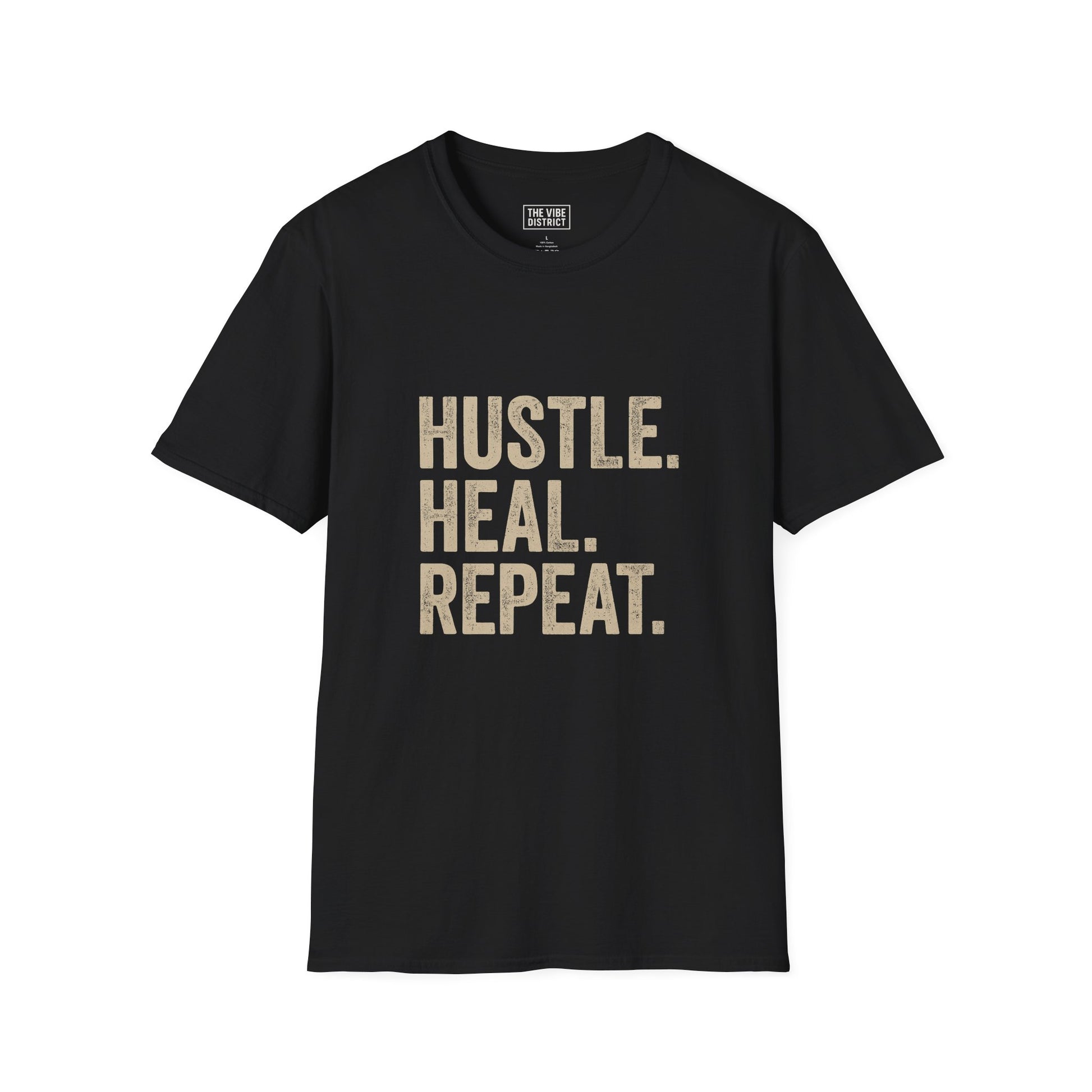 Empowering Hustle Heal Repeat Unisex Softstyle T-Shirt | Motivational Tee for Fitness, Self-Care, and Everyday Inspiration